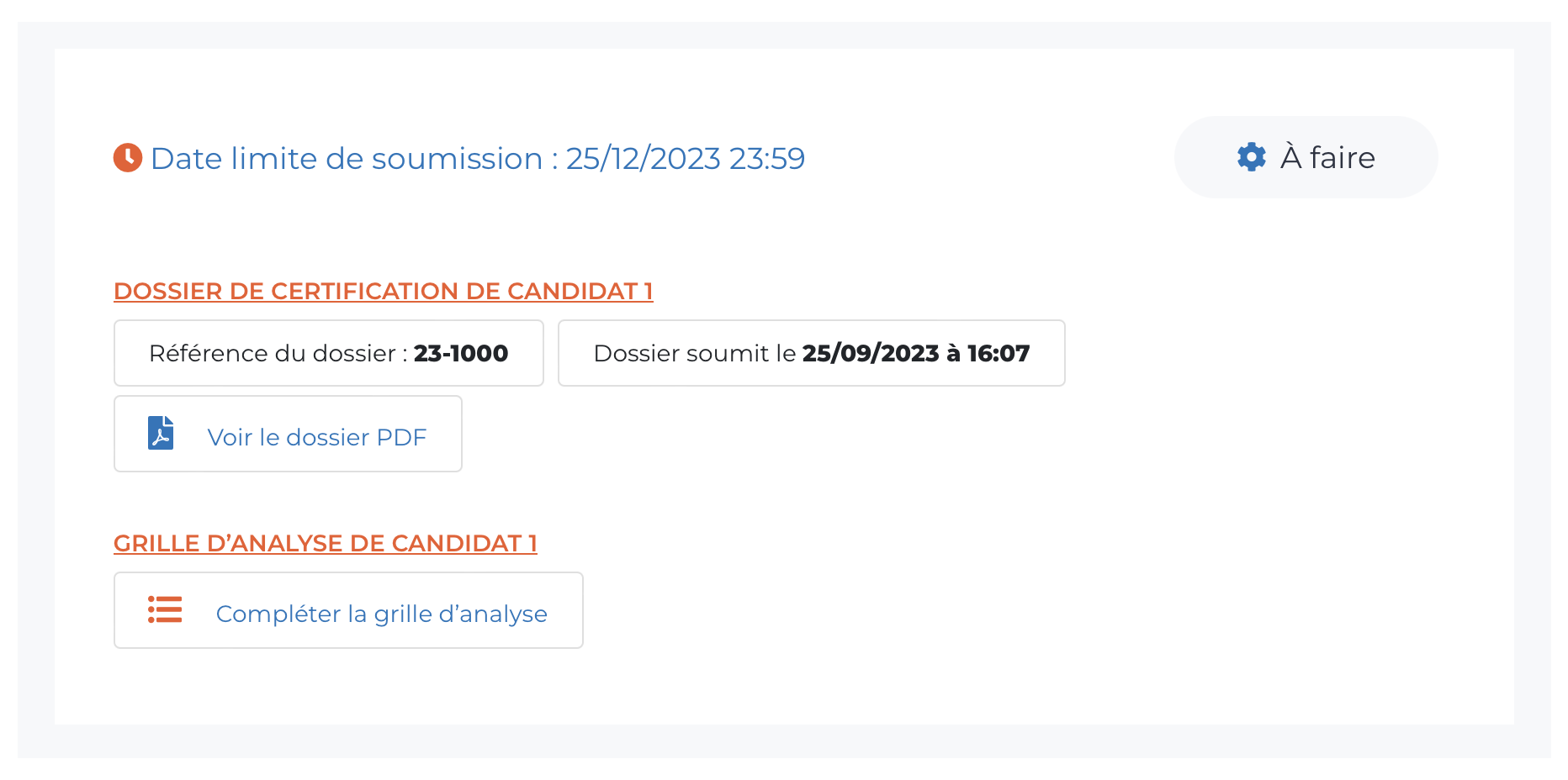 Vous pouvez également accéder au dossier complété et soumis par le candidat ainsi que toute ses pièces avant de commencer l’évaluation.