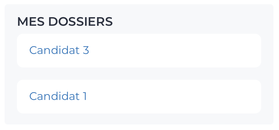 Vous arrivez alors sur la page privée du dossier du candidat.